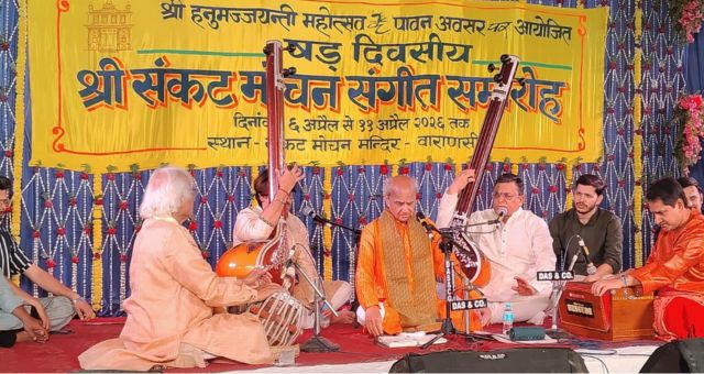 धर्म और संगीत की नगरी वाराणसी (Varanasi) में आयोजित संकट मोचन संगीत समारोह की तीसरी निशा भक्ति, शास्त्रीय संगीत और सुर-लय की अद्भुत त्रिवेणी के रूप में सामने आई। कार्यक्रम का शुभारंभ परंपरा के अनुरूप भगवान हनुमान की आराधना और मंगलाचरण से हुआ, जिसके बाद पूरी रात संगीतमय साधना का सिलसिला चलता रहा।