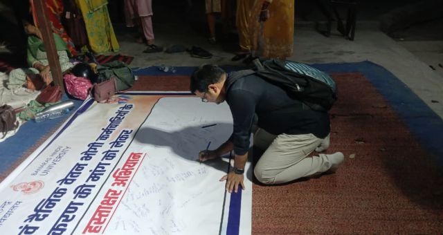 धरना स्थल पर आयोजित हस्ताक्षर अभियान (BHU) में हजारों कर्मचारियों और उनके समर्थकों ने भाग लिया। कर्मचारियों का कहना है कि वे पिछले नौ दिनों से शांतिपूर्ण ढंग से अपनी मांग उठा रहे हैं, लेकिन अब तक प्रशासन की ओर से कोई ठोस पहल नहीं की गई है।