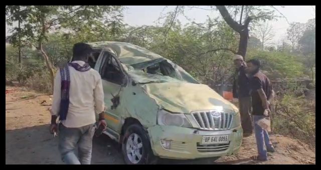 Sonbhadra के राबर्ट्सगंज क्षेत्र में शनिवार तड़के एक भीषण सड़क दुर्घटना ने खुशियों को मातम में बदल दिया। वाराणसी-शक्तिनगर राजमार्ग पर लोढ़ी के भेलाही बंधा के पास बारात से लौट रही एक जायलो कार अनियंत्रित होकर पलट गई। हादसा इतना भयावह था कि मौके पर ही तीन युवकों की मौत हो गई, जबकि चार अन्य गंभीर रूप से घायल हो गए। घटना के बाद मौके पर अफरा-तफरी और चीख-पुकार मच गई।