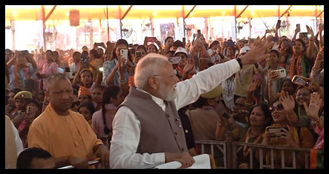 प्रधानमंत्री (PM Modi) खुली जीप में जनसभा स्थल तक पहुंचे और रास्ते भर लोगों का अभिवादन स्वीकार किया। कभी हाथ हिलाकर तो कभी हाथ जोड़कर उन्होंने काशी की महिलाओं का अभिवादन किया। इस दौरान उनके साथ भाजपा के राष्ट्रीय अध्यक्ष नितिन नबीन, मुख्यमंत्री योगी आदित्यनाथ और प्रदेश अध्यक्ष पंकज चौधरी भी मौजूद रहे।