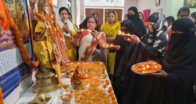 शहर (Varanasi) के लहमी स्थित सुभाष भवन में विशाल भारत संस्थान एवं मुस्लिम महिला फाउंडेशन के संयुक्त तत्वावधान में हिन्दू-मुस्लिम महिलाओं ने भगवान श्रीराम और माता जानकी की आरती की एवं उर्दू में लिखी राम एवं प्रार्थना किया। ढोल की थाप पर राम जन्म के गीत गाये गए।